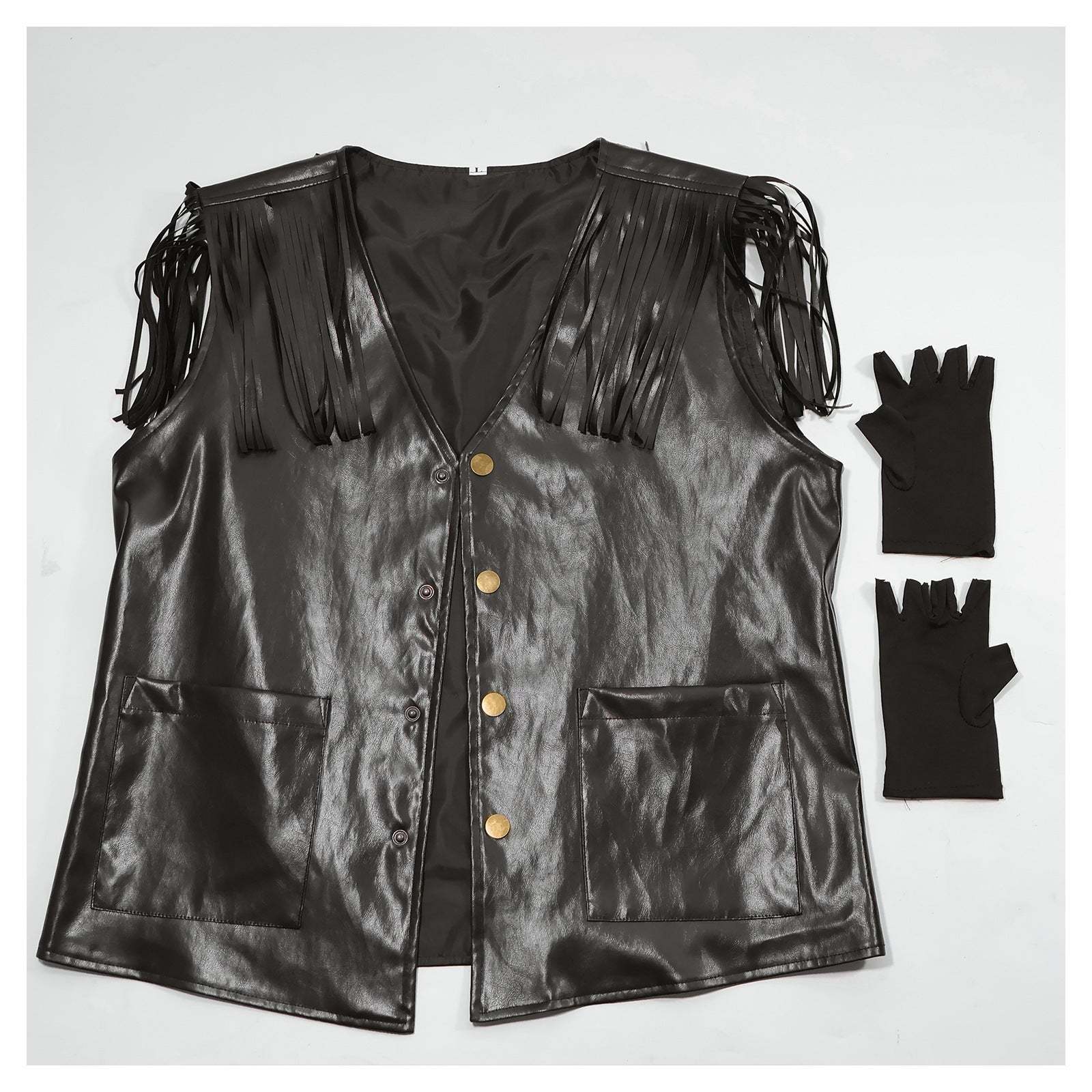 Faux Leather Biker Vest and Gloves