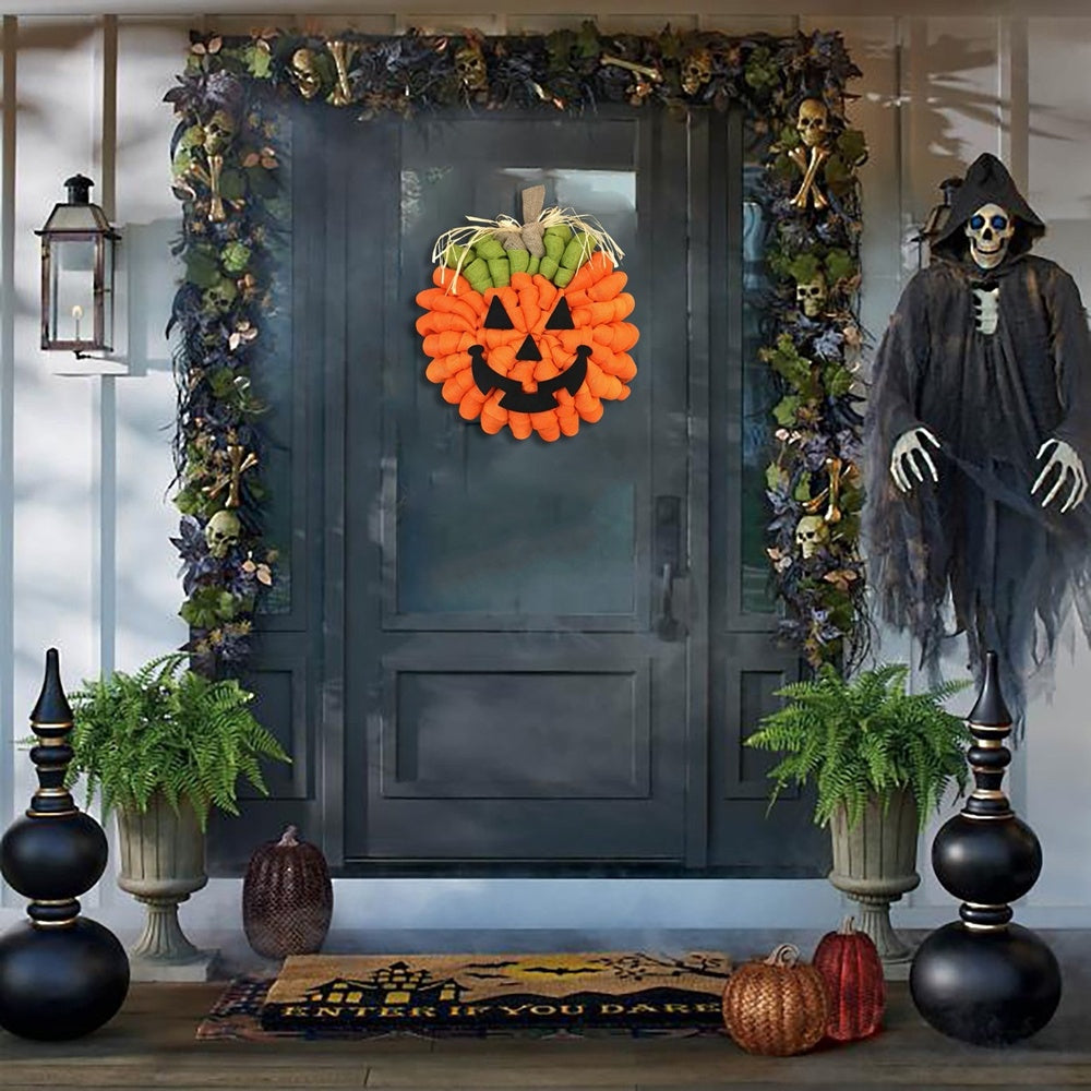 Halloween Autumn Pumpkin Wreath Front Door Hanging Pendant Artificial