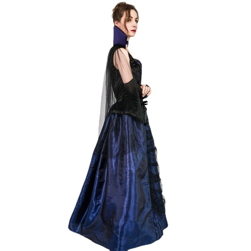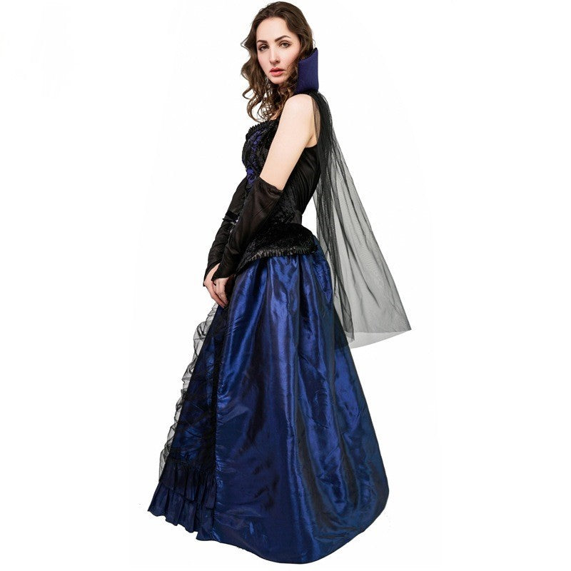 This haunted vampire costume for women features a polyester blend fabric in a dark, mysterious shade. Designed for average size and perfect for spooky parties or stagewear, it brings your eerie role-playing to life with comfort and style.