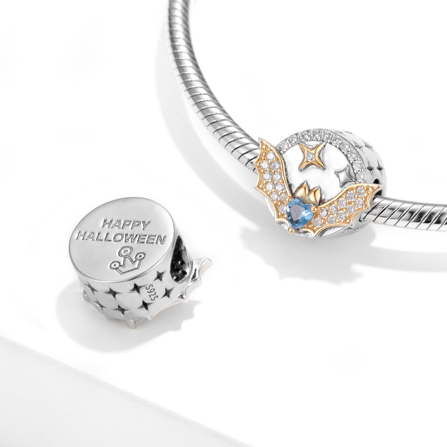 Shiny Bat Beads Halloween Series 925 Sterling Silver Gold-plated Bracelet Diy Accessories