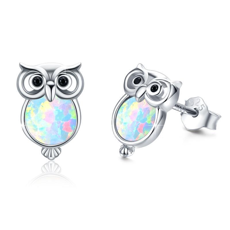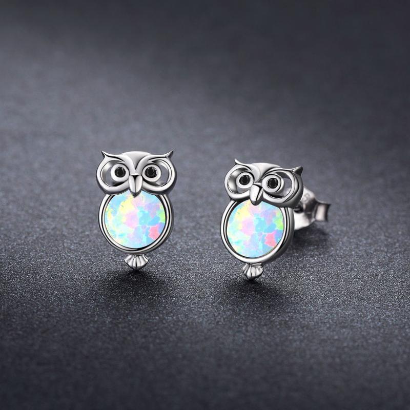 Sterling Silver Owl Small Cute Opal Stud Earrings Jewelry White Gold Plated Jewelry.